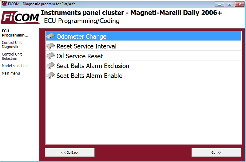 Die Funktion „Kilometerzähleränderung“ finden Sie im Menü „ECU-Programmierung/Codierung“, nachdem Sie eine Verbindung zum Steuergerät des Kombiinstruments hergestellt haben.