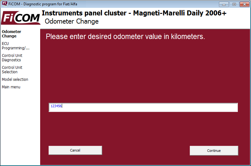 Änderung des Ficom-Kilometerzählers
