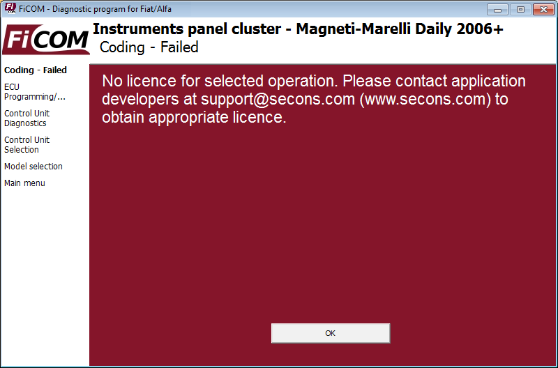 Im Falle einer fehlenden Lizenz zur Durchführung des Kilometerzählerwechsels kontaktieren Sie uns bitte unter [email protected]