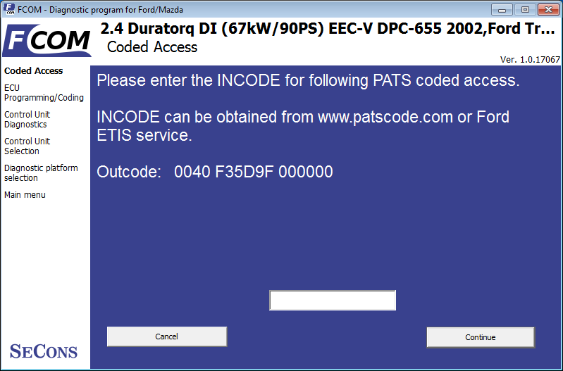 Denken Sie daran, dass für jeden OUTCODE, den ein Steuergerät generiert, ein eindeutiger INCODE erforderlich ist. Die Verwendung ein und desselben INCODE bei mehreren Operationen mit PATS ist nicht möglich.