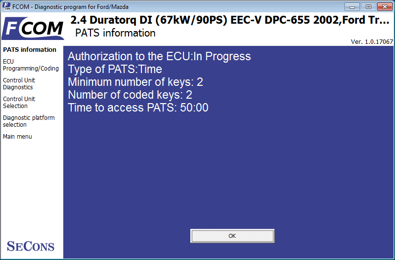 Bei Fahrzeugen, die mehrere Steuergeräte für das PATS-System verwenden (z. B. PCM und IPC, BCM RKE oder SCIL), müssen die Steuergeräte dieselben Fahrzeugsicherheitsdaten enthalten. Zu diesem Zweck bietet FCOM die Funktion „PATS Pairing“, die im Codierungsmenü von Nicht-PCM-Steuergeräten (IPC, BCM, SCIL oder RKE) verfügbar ist. Die Funktion ist nur auf codierten PATS verfügbar.