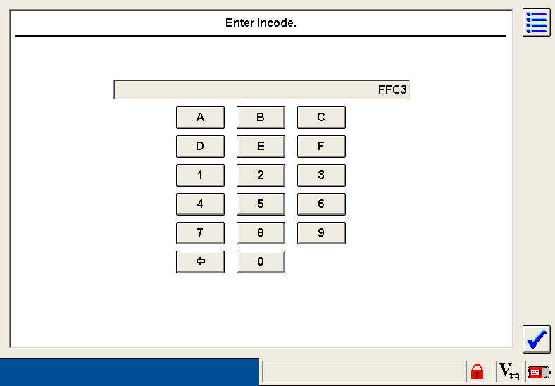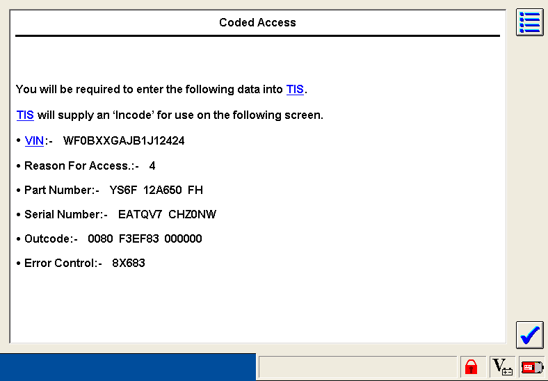 Im Codierungszugriff sehen Sie ein Fenster, in dem Sie nach OUTCODE/INCODE gefragt werden.