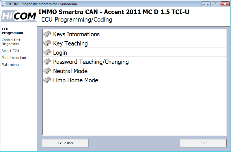 Das Verfahren zur Schlüsselcodierung ist im Steuergerät IMMO – Wegfahrsperre im Menü „ECU-Programmierung/Codierung“ verfügbar.