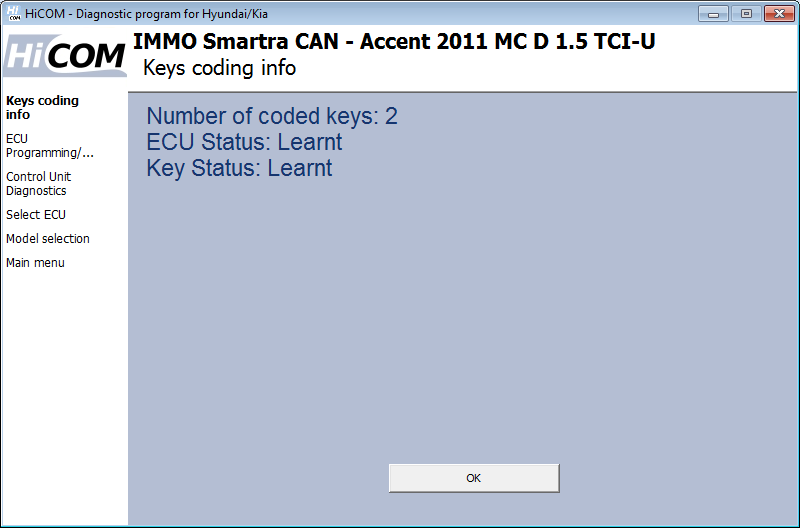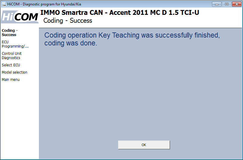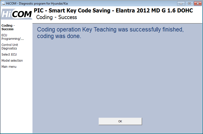 Nach Abschluss des Codierungsvorgangs zeigt HiCOM Informationen über die erfolgreiche Codierung an.