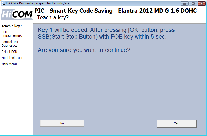 Jetzt haben Sie den Schlüssel im Zündschloss in der ON-Position. Dieser Schlüssel wird codiert, nachdem Sie auf die Schaltfläche „Ja“ geklickt haben.