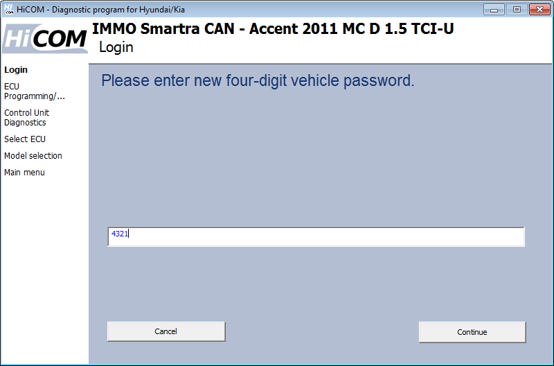 Wenn es sich bei der Steuereinheit nicht um eine „Virgin“-Steuereinheit handelt, werden Sie zur Eingabe eines Passworts aufgefordert. Das Passwort ist numerisch und besteht aus 4 Dezimalziffern (z. B. 1234). Bei der Virgin-Steuereinheit werden Sie direkt aufgefordert, ein Passwort festzulegen.
